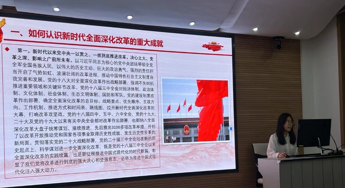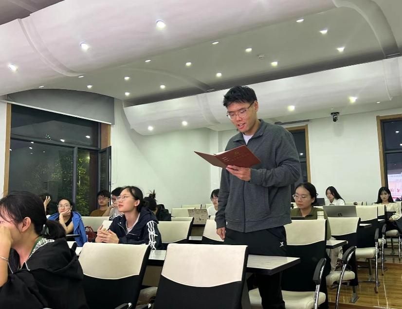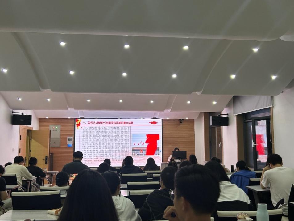 2024年9月23日晚,太阳集团tcy8722工商管理学术型研究生党支部在知行楼(经管楼)208教室,开展了党支部集中学习活动。本次学习的领学人为支部党员王小菁和徐成英两位同志,主要内容围绕党的二十届三中全会通过的《中共中央关于进一步全面深化改革、推进中国式现代化的决定》相关内容展开。