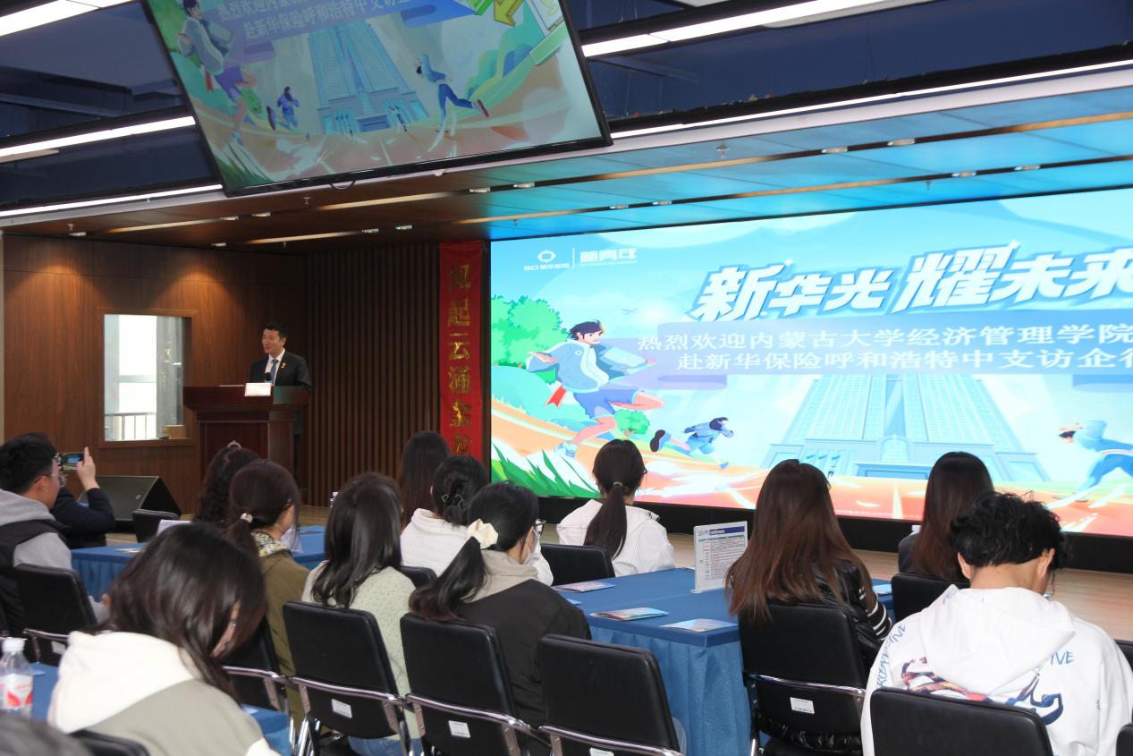 2024年3月27日上午,太阳集团tcy8722组织师生赴新华保险呼和浩特中心支公司参观交流。学院团委副书记、就业工作负责人、学院研究生、本科生代表共50余人参加了此次活动。