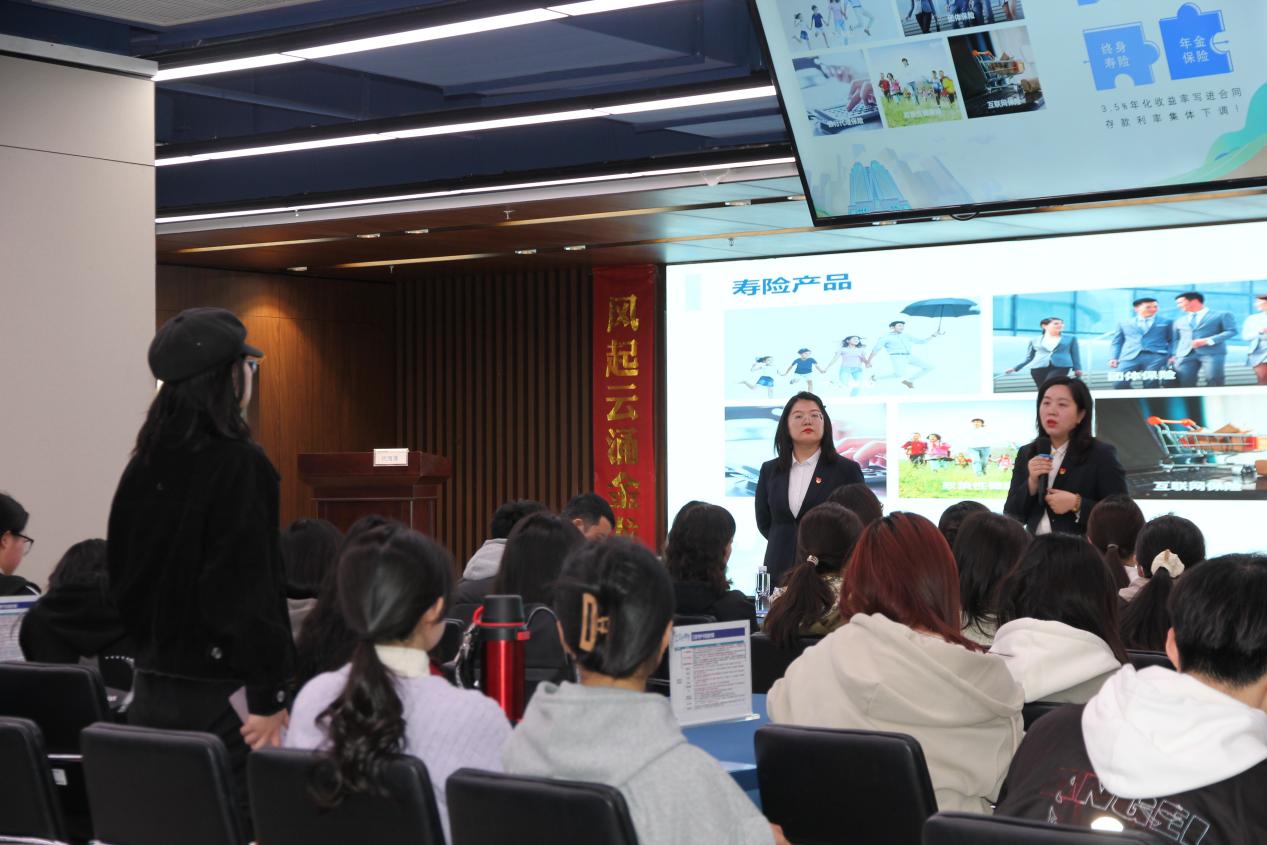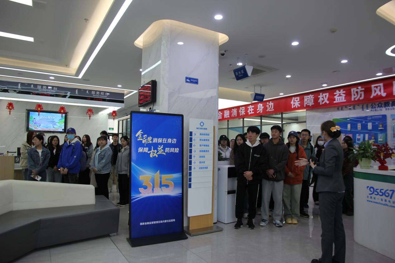 在新华保险呼和浩特中心支公司的精心协调组织下,师生沉浸式地参观了公司早会、星级柜面和职场环境,深入了解了保险行业的组织架构和运营机制,近距离感受了新华保险的企业文化和发展历程。