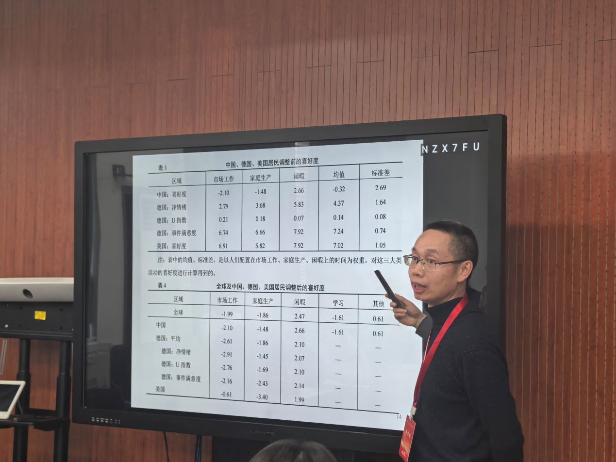 “tcy8722太阳集团时间利用与区域、生产率专场”由王文斌主持。王文斌介绍了其论文《全球时间配置的区域差异及其福利含义》,指出,一国居民的时间配置状况会影响其福利水平,而国家间时间配置差异有一多半可归因于区域间差异。中国居民的时间配置状况与东亚和太平洋类似。与全球平均水平相比,中国居民的市场工作时长远为更高、家庭生产时长远为更低、总劳动时长略高,闲暇时长略低;这四类活动时长的性别差异均显著小于全球平均。中国居民的体验效用略低于全球平均,体验效用的性别差异显著小于全球平均。