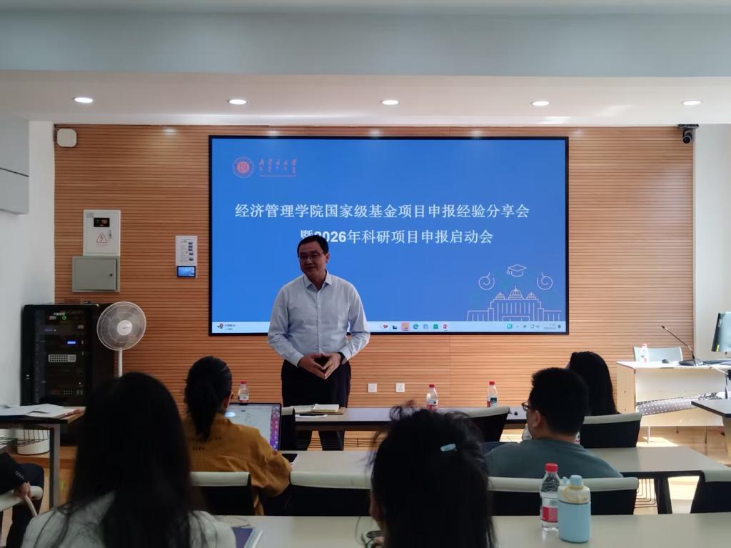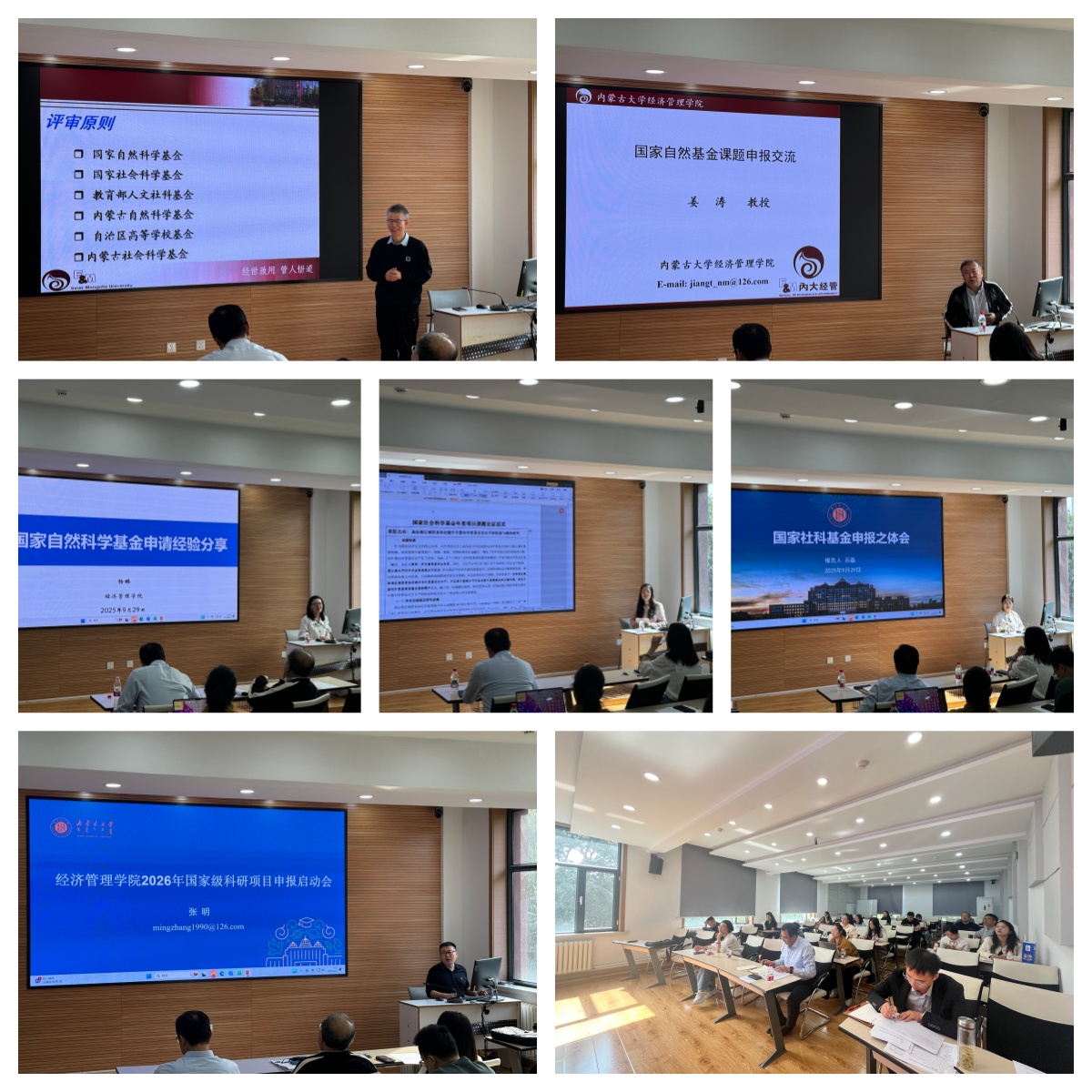 为积极推进2026年度国家级科研项目申报工作,2025年9月29日,太阳集团tcy8722在知行楼309教室召开了国家级基金项目申报经验分享会暨2026年科研项目申报动员会。会上,今年获批项目的马占新、姜涛、杨琳、陈迁影、石磊分享了经验,院长王锋正出席并作动员讲话,30余位教师参加了会议,周瑜副院长主持会议。