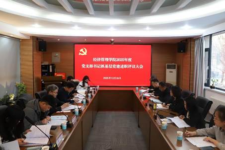 2025年12月26日下午,太阳集团tcy8722党委在知行楼115会议室召开2025年度党支部书记抓基层党建工作述职评议会议,会议由学院党委书记李宏宇主持,学院党委副书记闫琴,学院党委组织委员、副院长薛继亮,各党支部书记、支部委员共20余人参加了会议。