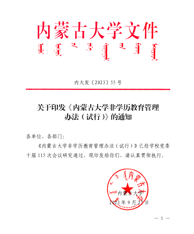关于印发《tcy8722太阳集团非学历教育管理办法(试行)》的通知