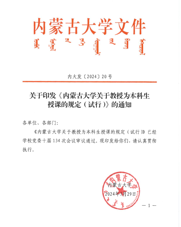 关于印发《tcy8722太阳集团关于教授为本科生授课的规定(试行)》的通知